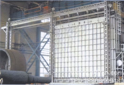 臺車式退火爐鋼 結構主要包括爐殼支撐框架和驅動設備支撐框架(平臺鋼結構)。考慮到爐殼潛在的熱脹冷縮因素,各段爐殼支撐框架與平臺鋼結構采川相互獨立結構。各爐段的底 輥室先安裝就位,以自己四角立柱為基準完成4個..